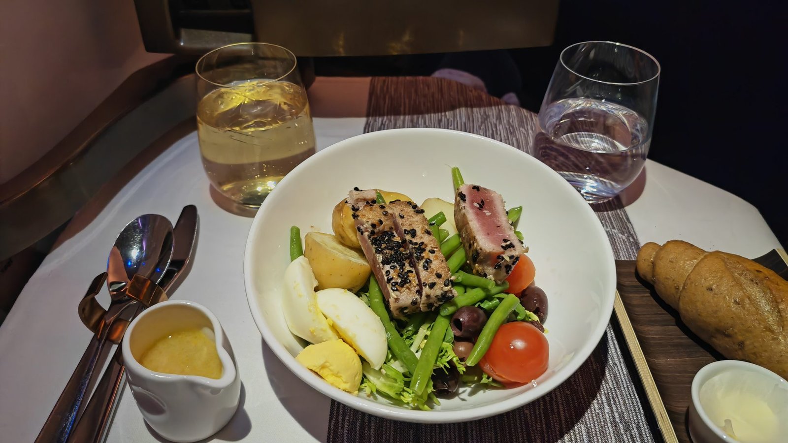 It was light, fresh, and the sort of thing that makes you feel smugly healthy at 38,000 feet.