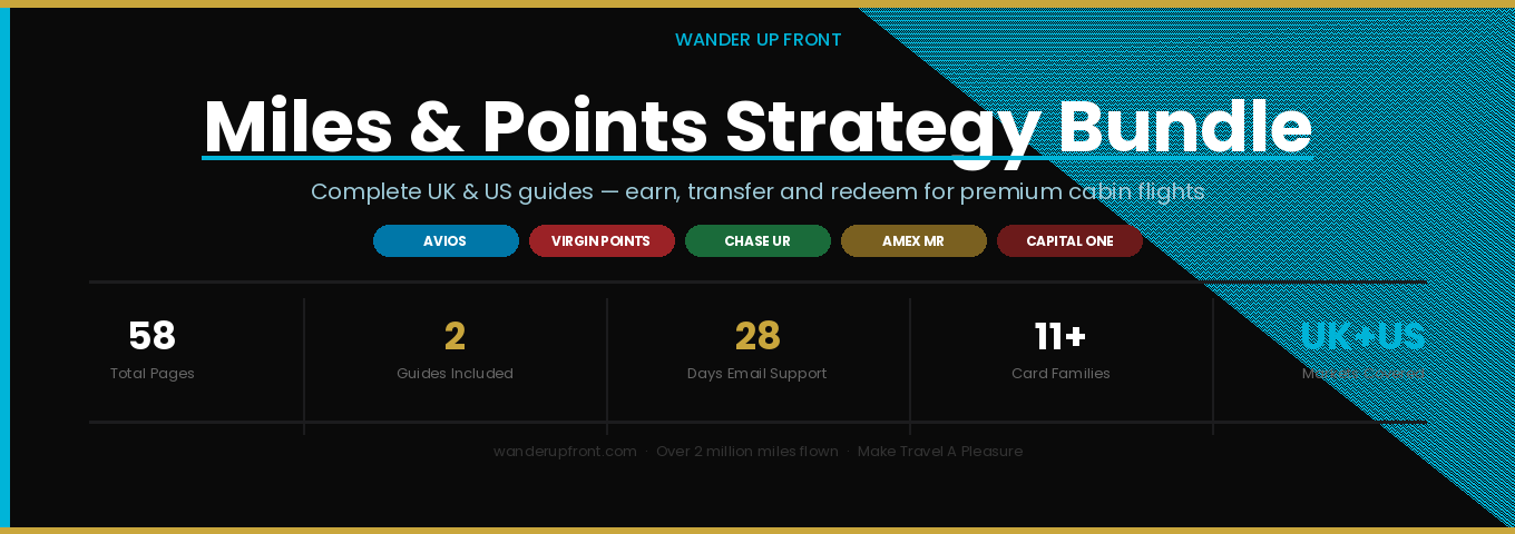 Whether you are based in the UK, the US, or you travel regularly between both — this bundle gives you the complete miles and points playbook for each market, written from first-hand experience by someone who has flown over 2 million miles in premium cabins.